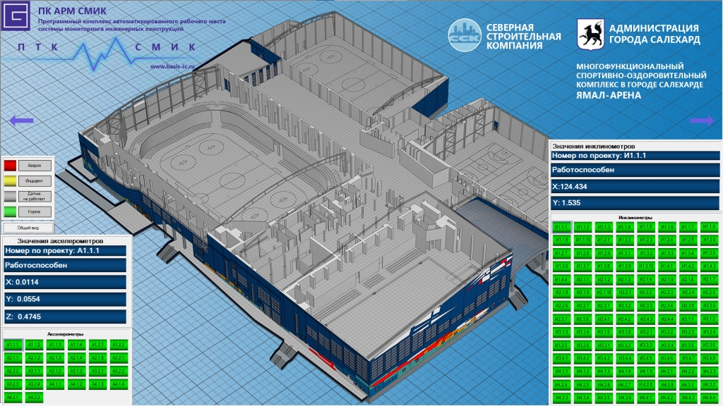 ЗАО «Инжиниринговый центр ГОЧС «БАЗИС» завершил выполнение комплекса работ по созданию системы мониторинга инженерных (несущих) конструкций (СМИК) Многофункционального спортивно-оздоровительного комплекса в г. Салехарде «ЯМАЛ-АРЕНА».